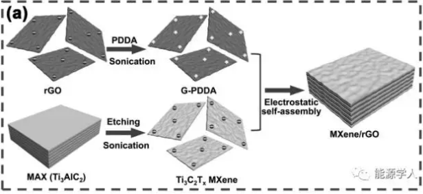 近期,德雷塞爾大學YuryGogotsi教授等人以帶正電荷的還原氧化石墨烯(rGO)和帶負電荷的碳化鈦MXene納米片為原材料,通過靜電自組裝法合成出MXene/rGO復合材料,作為超級電容器電極材料,表現出優越的電化學性能。此成果發表在國際期刊Adv.Funct.Mater.上。