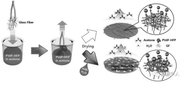 圖1.使用PVdF-HFP共聚物的GF基隔膜的制備過程示意圖。
