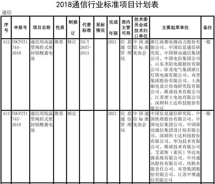 近日,國家工信部發布通知,公開征集行業標準及推薦性國家標準計劃項目意見,其中涉及蓄電池國家推薦標準1項、行業標準4項。其中關于鋰離子電池安全性要求的修訂,主要由鋰離子電池安全標準特別工作組(中國電子技術標準化研究院、寧德時代新能源科技股份有限公司、欣旺達電子股份有限公司、東莞新能源科技有限公司等)負責起草。詳細如下: