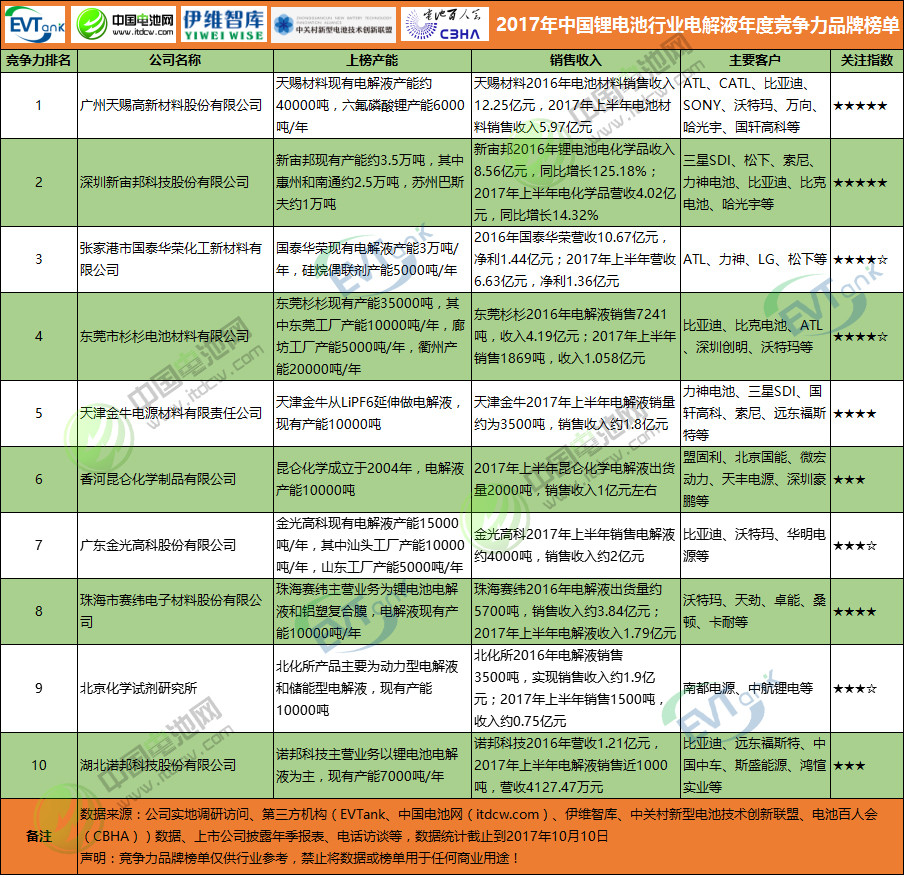 2017年度中國鋰離子電池產(chǎn)業(yè)鏈年度競爭力品牌排行榜
