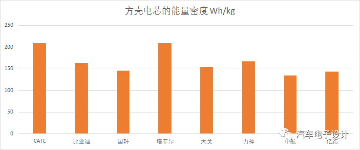 我想就我了解的信息做個(gè)梳理,大概對(duì)現(xiàn)有的電池單體的能量密度做個(gè)整理,主要是對(duì)王博士的這張圖做一些擴(kuò)展,三元鋰電池單體能量密度較高,從136Wh/kg到230Wh/kg不等,平均為183Wh/kg