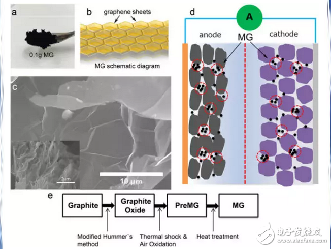 這主要與細胞中的低密度和高成本有關。錢成開發了一種蜂窩狀多孔石墨烯海綿,也被稱為“魔術G”(MG),具有高導電性,高比表面積和高電解質吸收能力。海綿已經作為添加劑摻入鋰離子電池的陽極和陰極,以提高速率能力和高速率循環性。